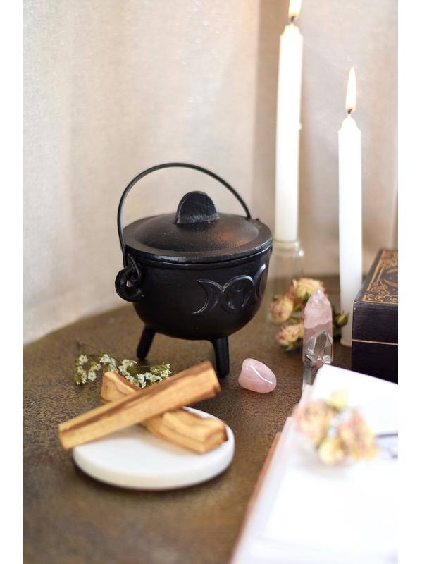 Connu pour la pratique des rituels magiques, le chaudron représente la création et la transformation. Associé à l’élément Eau ou à l’élément Feu, il peut être aussi bien utilisé pour faire bouillir un mélange d’ingrédients nécessaires aux rituels que pour consumer les encens et les plantes.