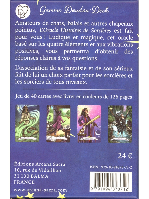 Amateurs de chats, balais, et autres chapeaux pointus, l’Oracle Histoires de Sorcières est fait pour vous ! Après un franc succès du Tarot Histoires de Sorcières, retrouvez son Oracle à la sagesse brillante et aux images à l’énergie witchy. Clair, ludique, saupoudré d’un brin de magie, cet Oracle stimulera votre intuition et ajoutera des vibrations positives à votre vie. L’association de sa fantaisie et de son sérieux vous aidera à traverser les moments les plus difficiles. Cet Oraclce facile d’accès de 40 cartes, avec son livret d’accompagnement en couleurs, est le choix parfait pour les sorcières et les lecteurs de tous niveaux.